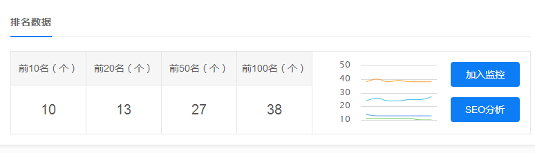 这个统计的是本站有指数的关键词前100名排名情况。由此可见网站的关键词数量还是不少的,虽然客户只做了三个关键词,但是整站优化带来的效益是很明显的。