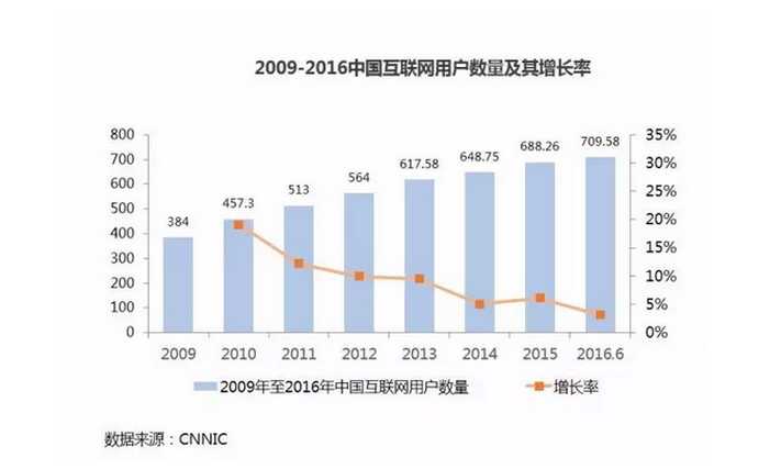互联网行业在推动供给侧改革创新与居民消费升级中扮演的角色越来越重要。但是,互联网在经历五年高速发展后在 2016 年进入了深水区,互联网用户增长率明显放缓,中国遇到网民红利危机。